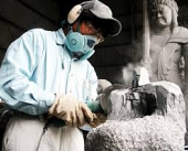 「石は強くて、しかもつくり手のその時々の精神状態などを映し出す力も持っている素材。ぼくは鑑賞者を飽きさせない作品をつくりたいと思っています。だから自分が楽しみながら、自然体でつくらないとダメ。石を彫る上で一番大切なのは『遊び心』。つまり体力と精神力が健全な状態にあること。その状態で石を彫って、鑑賞者の気持ちをズズズッと音をたてて動かしたいですね」